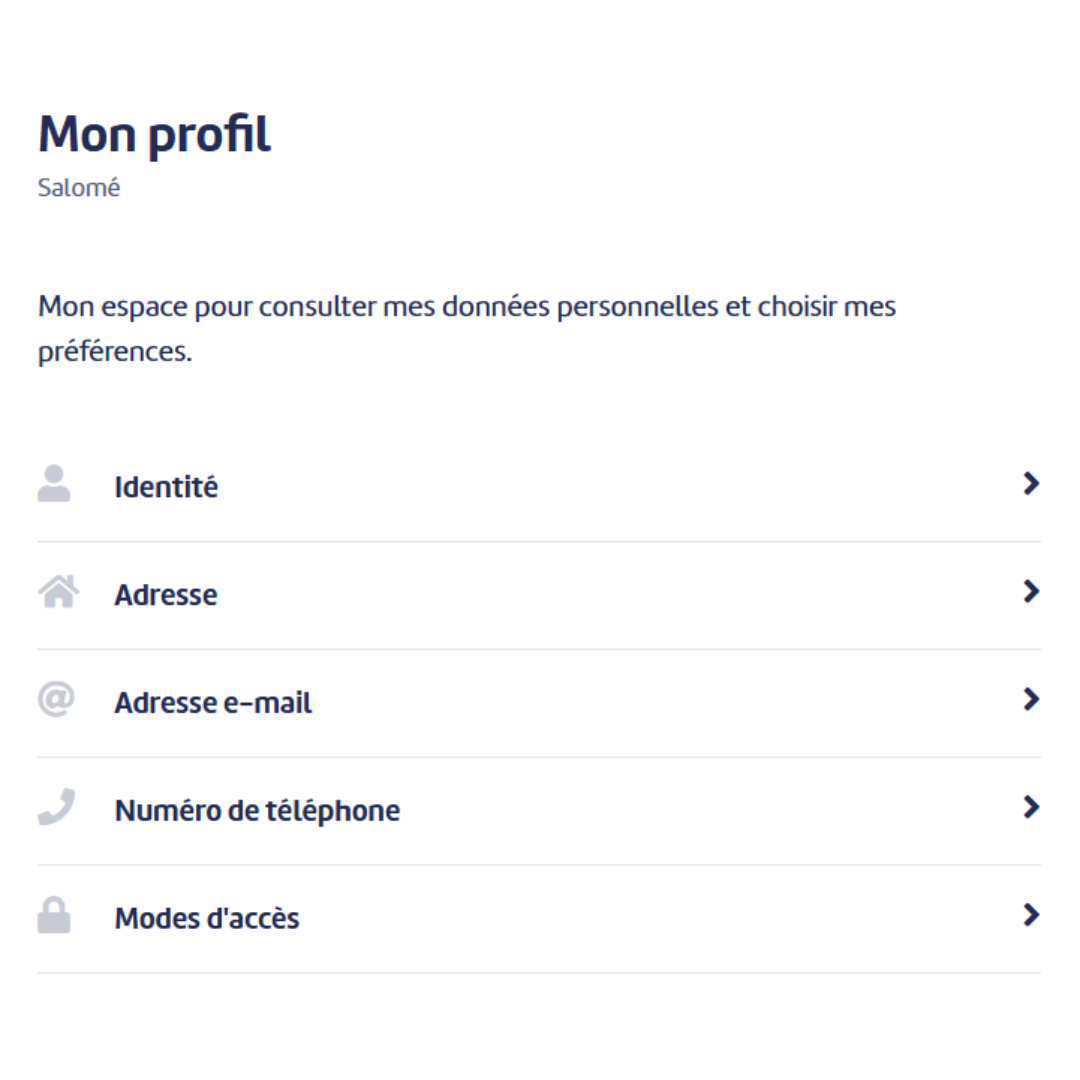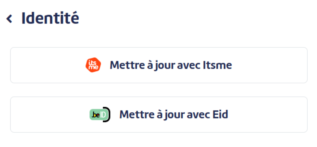 Vos coordonnées personnelles (prénom, nom de famille, sexe, langue, lieu/pays/date de naissance, nationalité, numéro de document d’identité, numéro de registre national…) peuvent être mise à jour via itsme ou avec Eid.