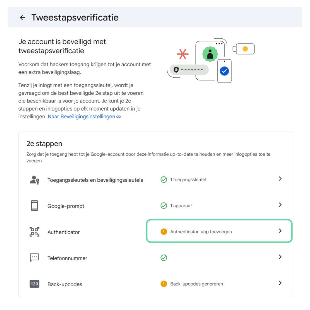 3. Klik op “Authenticator-app toevoegen”.