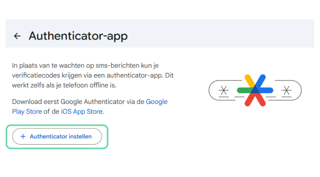 4. Klik vervolgens op “Authenticator instellen”.