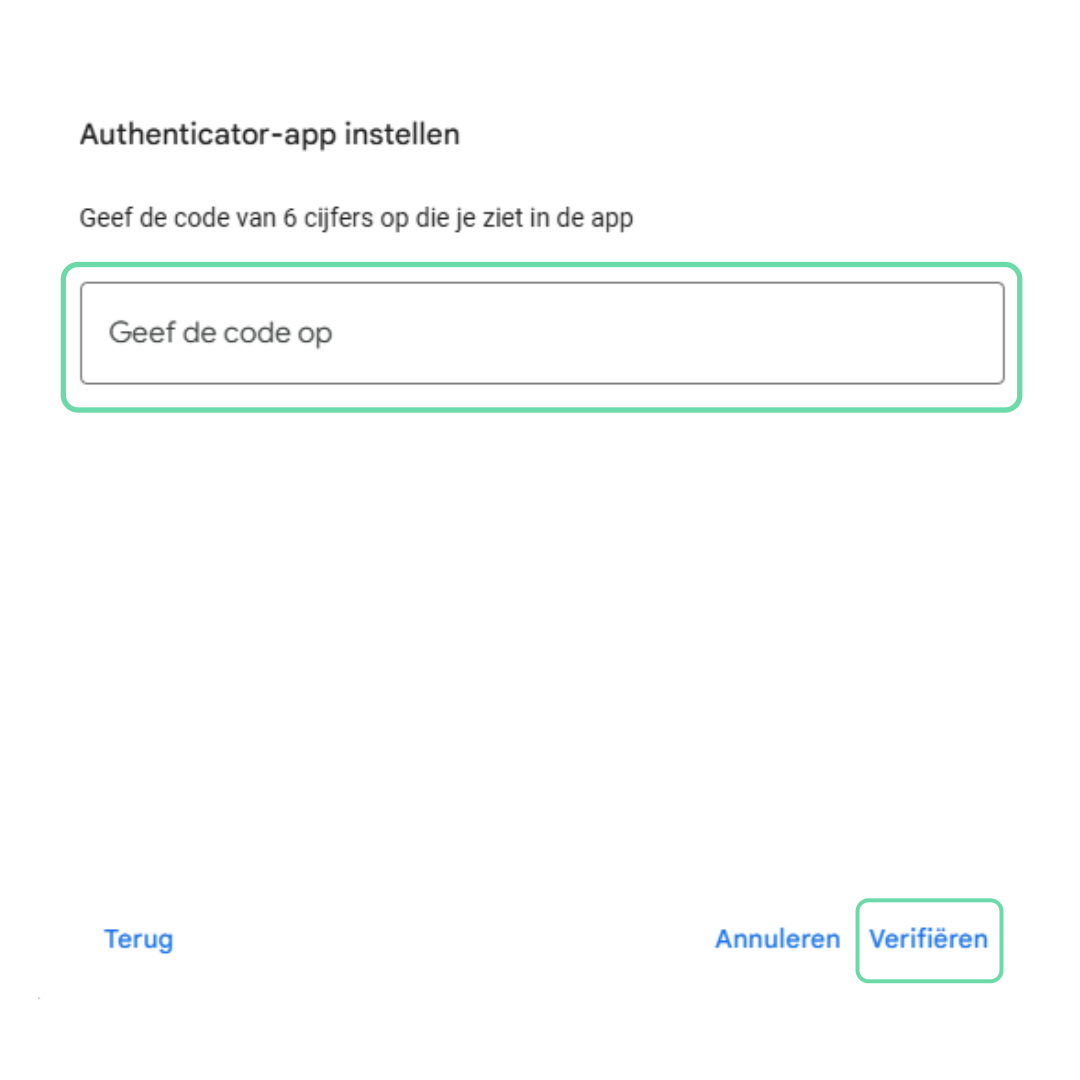 Kopieer deze code in het veld met 6 cijfers en klik op “Verifiëren”.